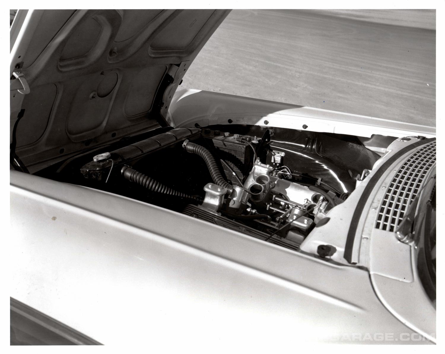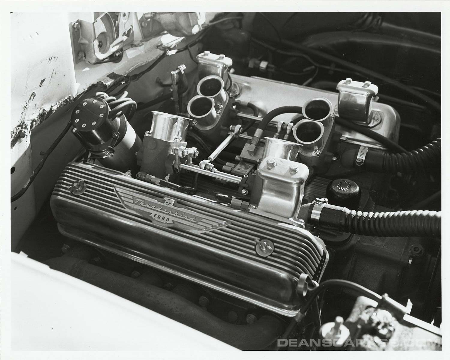 The Ranchero behind might look like an ordinary service vehicle, but it was anything but. One of 230 “F Code” Fords and Thunderbirds the factory built with a Paxton-McCullough centrifugal Supercharger and 4 bbl carburetor.