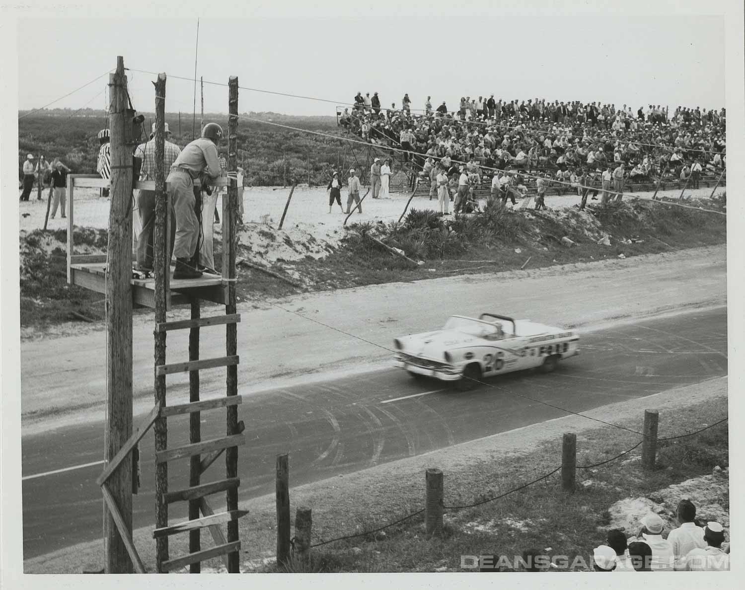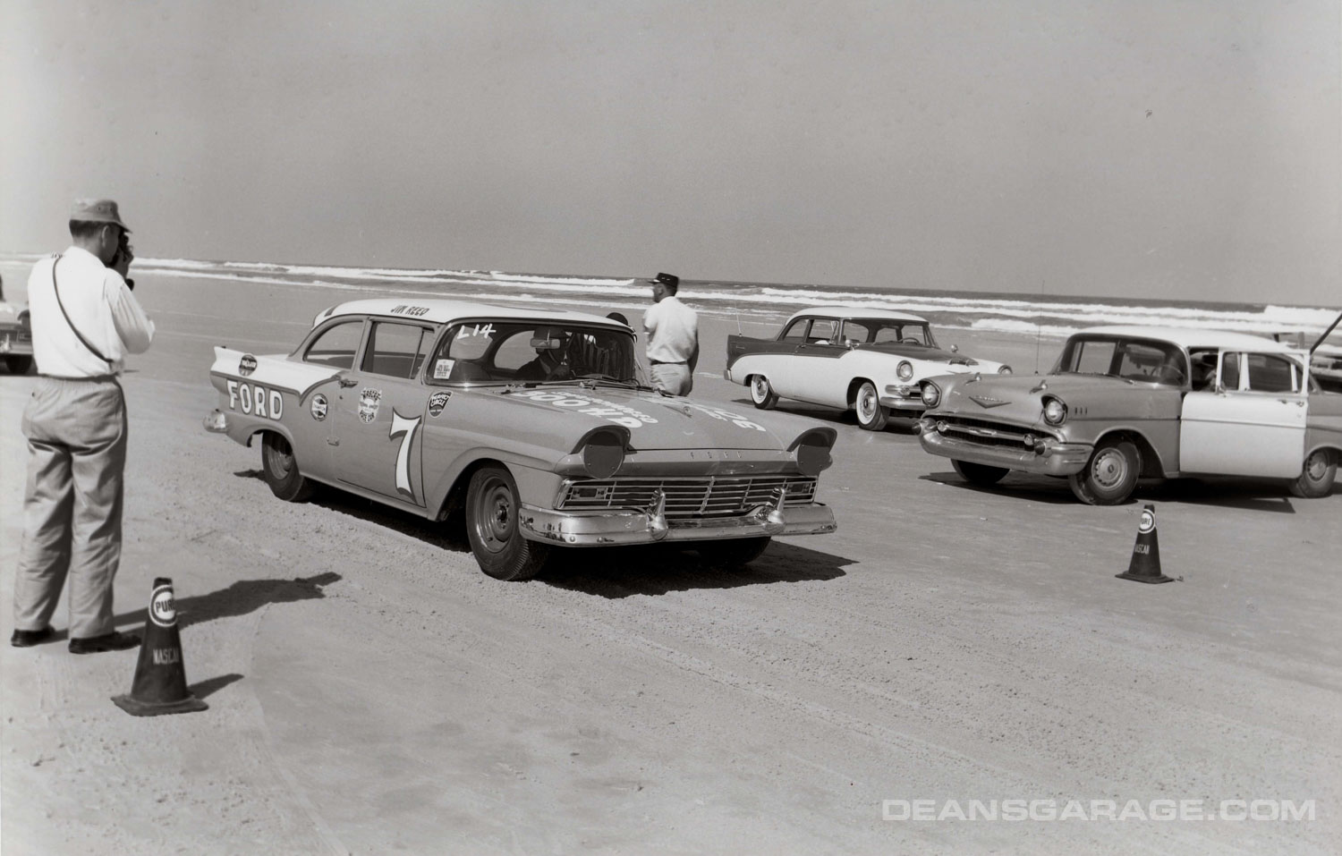 In both 1956 and 1957 Ford sent one of their company photographers down to Daytona with his trust Speed Graphic camera, which shot a 5×7 negative. That’s why these pictures are so crisp and clear.