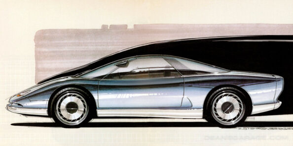 We associate Swiss-born, Americanized designer Mark Stehrenberger with full-color car magazine illustrations of concepts and soon to be released new models. His illustration style conveyed a sense of realism that gave the concepts credibility. Mark’s career also included product and car design, fashion design, teacher, industrial consultant, writer, and producer.
