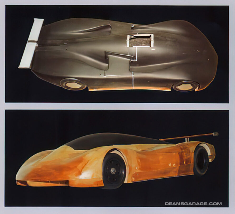 “Most of the aero development took place in the wind tunnel located next to the GM Design Center in Warren, Michigan. Testing was performed at night because of the added noise of the high speed requirements. We initially put Foyt’s Indy car in the tunnel, only to get a baseline. This car, in superspeedway configuration, had tremendous downforce due to its ground effects underbody and wings, front and rear, but being an open single-seater with exposed wheels and wings it had also a tremendous drag. The goal of Aerotech was to have comparable downforce for lapping Indianapolis, but without the drag. Aerotech did not have to conform to any rules, therefore its ground-effects tunnels were much larger than the Indy, F1, or even any Group C or IMSA cars of the day. With these large tunnels, no exterior wings were needed, therefore its drag was a fraction of the one of an Indy car, and THAT was one of the major reasons for Aerotech’s success. The later long-tail, streamliner car was even lower in drag.”