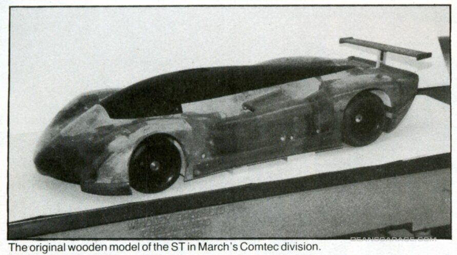The 85C type was much lighter than 84C and twice as stiff. Its wheelbase of 111-inch was a very important factor in the design of the Aerotech. The two cars had Quad 4-derived engines, very different in between, though. These were coupled to a March transverse gearbox as used on Indy car racing on the ‘ST’ and to a Hewland unit on the ‘LT’. March’s ST car 2.0-liter Quad 4 ‘RE’ engine was built by Batten Engineering of Romulus, Michigan. It had a problematic and much delayed set-up phase on the dyno. RE was derived from a Quad 4 production unit and used methanol as fuel. A massive single Garrett turbo compressor and two injectors per cylinder were RE’s distinctive features. Its installation at the back of ST took place at Foyt’s workshop, 20 miles northwest of Houston. ST’s completion was overseen there by Hewell ‘Hughie’ Absalom, the legendary race mechanic, member of March at the time and the person who had actually built most of the car at March in Bicester. ST was the car used by Foyt for the ‘world’s closed-course speed record’ of 257.124 mph at the old Firestone in Fort Stockton 7.712 miles long oval test track set on August 27, 1987. This was an unofficial record, since there was no such officially recognized category.