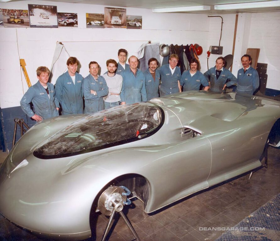 In the photo Clay Model in Basement “Studio” with Gilmore – Foyt March 84C Chassis from left to right are Dave North, Ed Welburn, Kirk Jones, Elizabeth Kohl, Gary Clark and Lee Paradise.