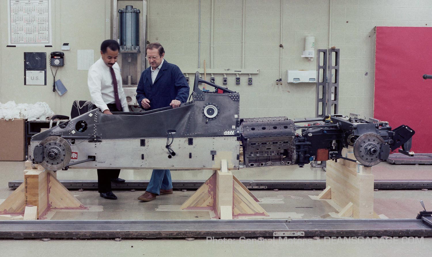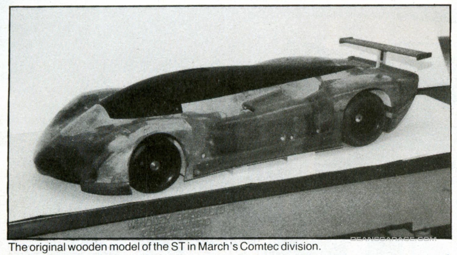 In the photo Clay Model in Basement “Studio” with Gilmore – Foyt March 84C Chassis from left to right are Dave North, Ed Welburn, Kirk Jones, Elizabeth Kohl, Gary Clark and Lee Paradise.