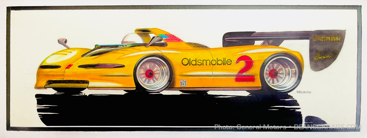 “Design leadership loved my sketch and wanted me to quickly develop a scale model before the Oldsmobile leadership team and A.J. Foyt came to GM Design for their meeting on the project. When they came, the original streamliner model was displayed in the conference room for their meeting. My completed scale model was not. When Foyt saw the streamliner he was concerned or, OK, angry, and so were the Olds leaders. They were then shown my scale model and the reaction was over the moon. Foyt thought that the Advanced Studios streamliner was just a test bed for my very sculpted supercar.